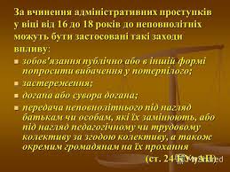 До осіб віком від шістнадцяти до вісімнадцяти років, які вчинили адміністративні правопорушення, застосовуються заходи впливу, передбачені статтею 24-1 цього Кодексу.
